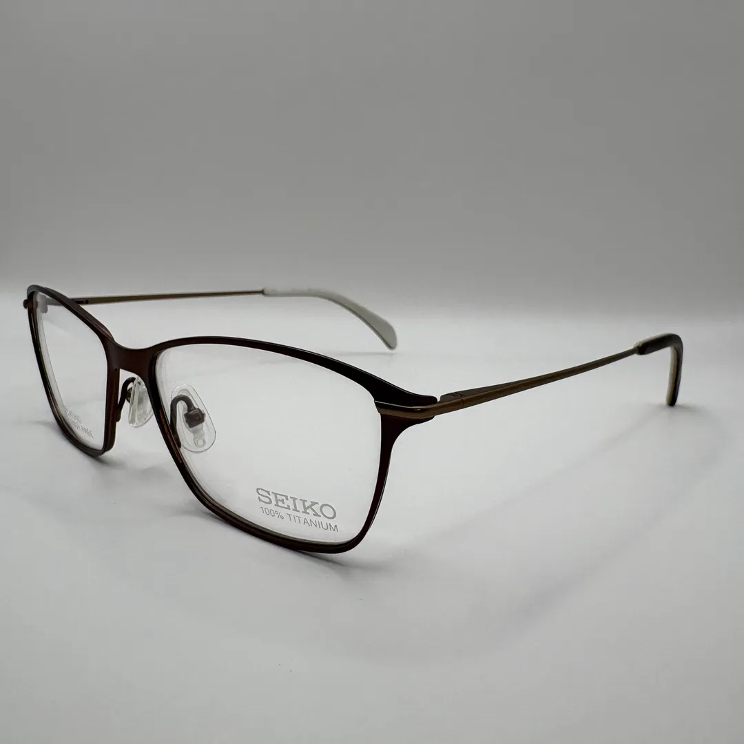 Ženski Seiko dioptrijski ram je izrađen od 100% titanijuma, što ga čini izuzetno laganim, čvrstim i otpornim na koroziju. Elegantan dizajn u tamnosmeđoj nijansi pruža sofisticiran izgled. Idealan za svakodnevnu upotrebu i poslovne prilike.